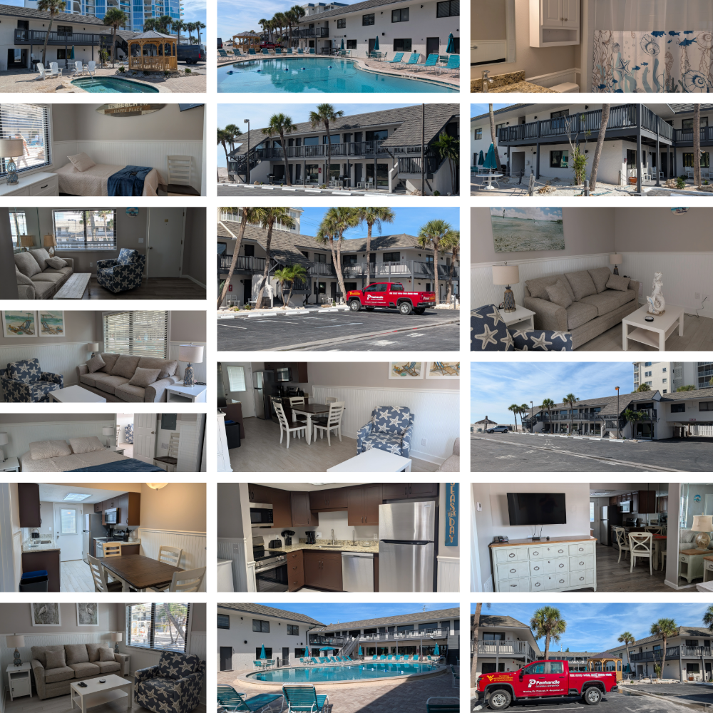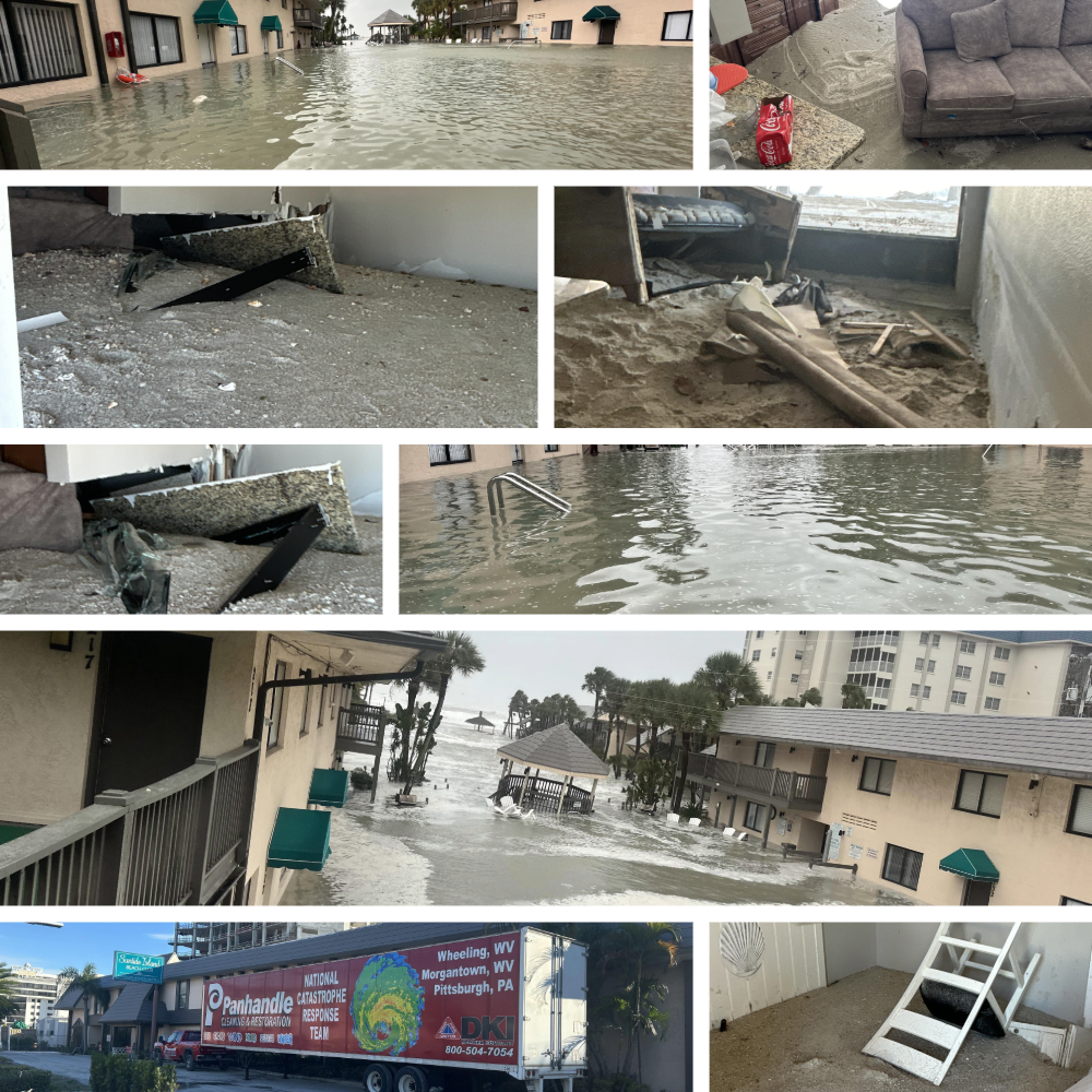 These photos showcase our work at Suntide Island Beach Club, where the property experienced significant storm surge damage from a recent hurricane. Our team responded immediately, performing the initial mitigation, including water extraction, moisture control, debris removal, and stabilization of affected areas.